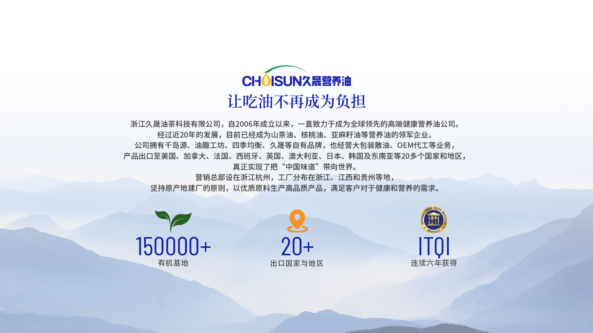 甄選高山老樹齡有機油茶籽冷榨而成,全程品質(zhì)控制,榮獲四國有機認證,品質(zhì)更安心。
